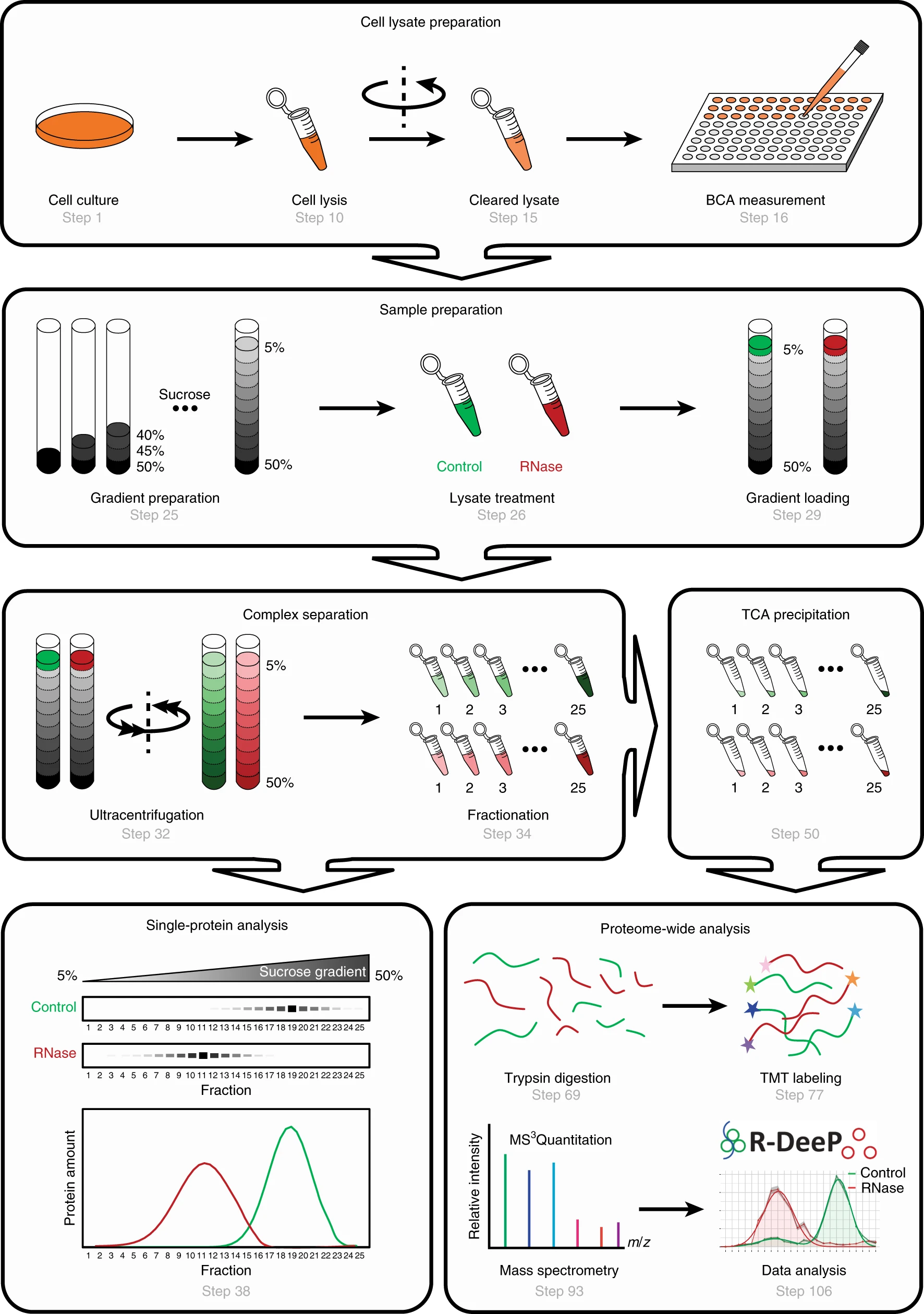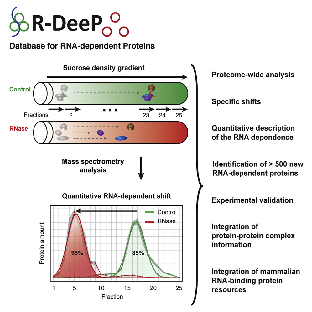 Identification, quantification and bioinformatic analysis of RNA-dependent proteins by RNase treatment and density gradient ultracentrifugation using R-DeeP.
