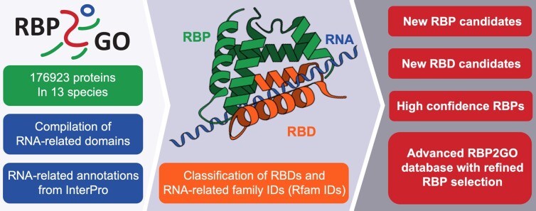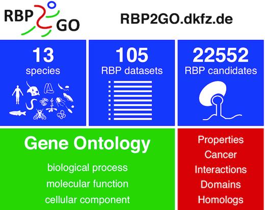 RBP2GO is a comprehensive resource on RNA-binding proteins (RBPs) across 13 species.